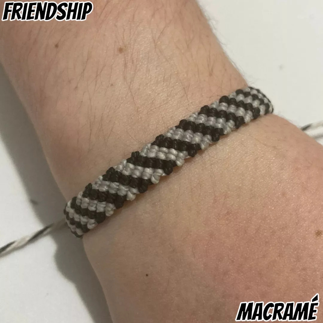 Hecha a mano con hilo encerado en 2 coloresNudo corredizo para ajustar a tu muñeca